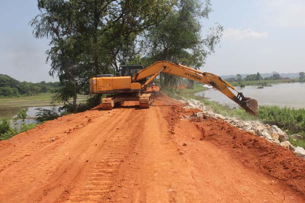 本次演練是以貴溪市新田聯圩防洪工程施工項目所在地連日持續大雨天氣,引發羅塘河河水暴漲,導致樁號K10+247~K11+000段大堤出現塌方、開裂現象,啟動防汛應急預案為背景,開展的防汛演練。演練科目包括:險情報告、啟動應急預案,組織應急救援隊伍投入搶險,堤腳拋石固腳、堤身砂卵石及土方填筑、堤身迎水面鋪設防沖彩條布、編織袋裝砂石堤身加固等內容。演習完成后,參與演習的主要成員,對本次演習效果進行了評價,為公司《防汛應急預案》的修訂完善作了充分的基礎工作。